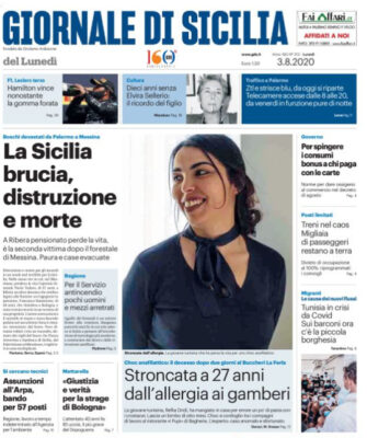 Nella sua prima pagina l'edizione odierna del "Giornale di Sicilia" focalizza la propria attenzione sugli incendi in Sicilia. A Ribera...