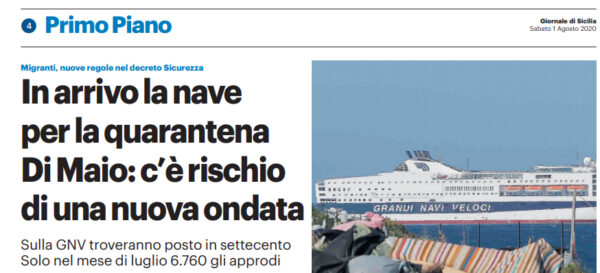 L'edizione odierna del "Giornale di Sicilia" parla della nave per la quarantena dei migranti in arrivo nella regione. Il Viminale,...