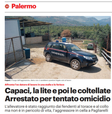 L'edizione odierna del "Giornale di Sicilia" parla dell'episodio accaduto tra due uomini a Capaci. Litigano dentro una stalla e poi...