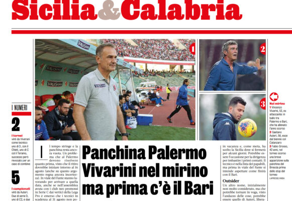 Gazzetta dello Sport: “Panchina Palermo. Vivarini nel mirino ma prima c’è il Bari. Auteri…”