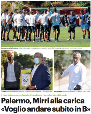 L'edizione odierna del "Giornale di Sicilia" riporta le dichiarazioni di Dario Mirri, presidente del Palermo, presente nel ritiro di Petralia...