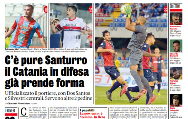 Il Catania sembra molto attivo sul mercato, la squadra etnea infatti ha chiuso l'operazione Santurro con il Bologna. L'edizione odierna...