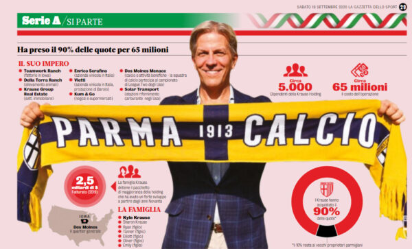 Il Parma da ieri ha un nuovo proprietario, si tratta del magnate americano Kyle Krause che ha acquisito, per 65...