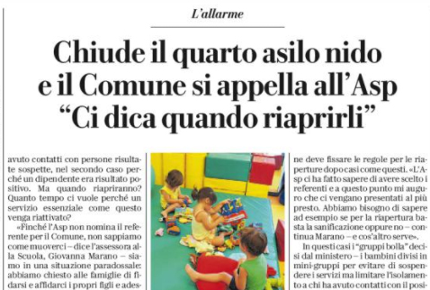 Repubblica: “Palermo. Chiude il quarto asilo nido e il Comune si appella all’Asp «Ci dica quando riaprirli»”