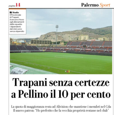 L'edizione odierna de "La Repubblica" si sofferma sul Trapani. Circola la voce che Pellino abbia rilevato solo una parte minoritaria...