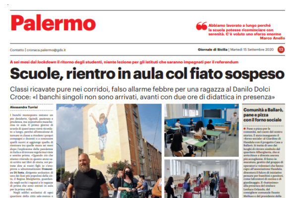 L'edizione odierna del "Giornale di Sicilia" si sofferma sul rientro a scuola a Palermo. Negli edifici scolastici di ogni quartiere...