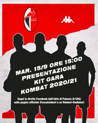 Domani ci sarà la presentazione del nuovo kit gara Kombat 20/21 del Bari targato Robe di Kappa. L'annuncio dei galletti...