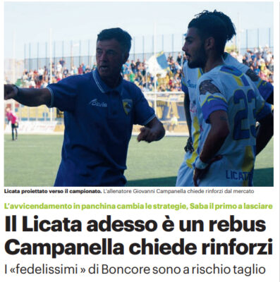 Gds: “Il Licata adesso è un rebus. Campanella chiede rinforzi. I «fedelissimi» di Boncore sono a rischio taglio”