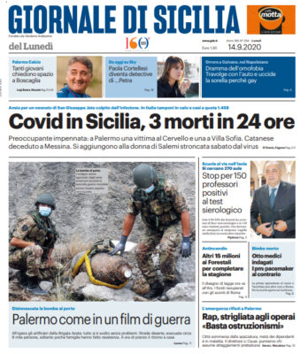 Prima pagina Giornale di Sicilia: “Covid in Sicilia, 3 morti in 24 ore. Palermo Calcio, tanti giovani chiedono spazio a Boscaglia”