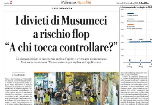 L'edizione odierna de "La Repubblica" si sofferma sull'ordinanza di Musumeci. Adesso il problema sono i controlli. «In un momento come...
