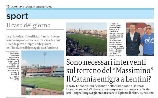 L'edizione odierna de "La Sicilia" si sofferma sullo stadio "Massimino". Il manto erboso è in pessime condizioni: quando piove, infatti,...