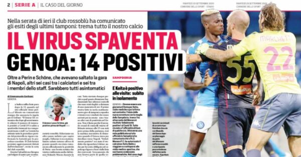 Nella sua prima pagina l'edizione odierna del "Corriere dello Sport" si sofferma sul focolaio Genoa.