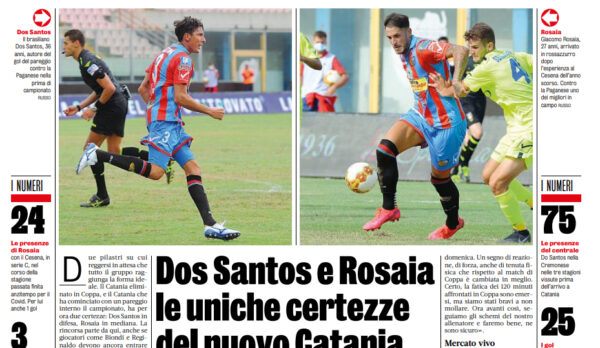 L'edizione odierna della "Gazzetta dello Sport" si sofferma sul Catania. I due pilastri sono Dos Santos in difesa e Rosaia...