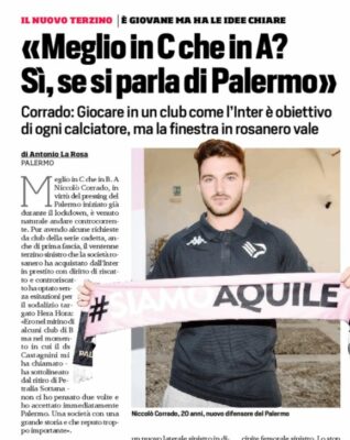 L'edizione odierna del "Corriere dello Sport" riporta le dichiarazioni di Niccolò Corrado, terzino del Palermo: «Ero nel mirino di alcuni...