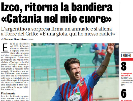 L'edizione odierna della "Gazzetta dello Sport" riporta le dichiarazioni di Mariano Izco dopo il suo ritorno a Catania «Sono cresciuto...
