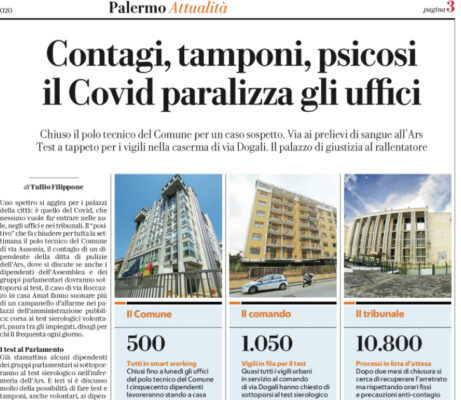 L'edizione odierna de "La Repubblica" si sofferma sull'emergenza Coronavirus a Palermo. Dal polo tecnico del Comune di via Ausonia agli...