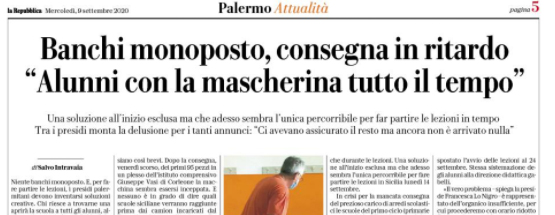 L'edizione odierna de "La Repubblica" si sofferma sull'emergenza Coronavirus nelle scuole di Palermo. Non sembra che la consegna dei banchi...