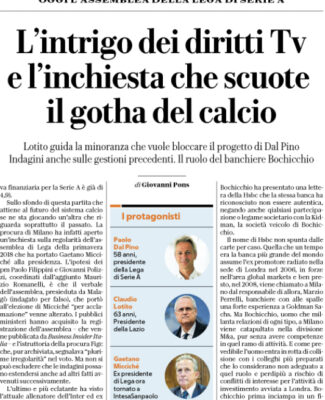 L'edizione odierna de "la Repubblica" si sofferma sull'assemblea della Lega di Serie A. Si deciderà se fare entrare in una...