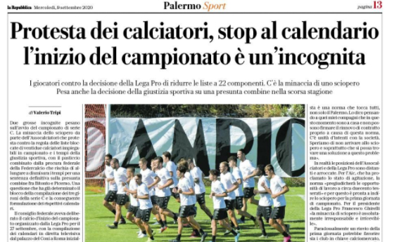 L'edizione odierna de "La Repubblica" si sofferma sullo stop al calendario di Serie C, spinto dalla minaccia dello sciopero da...