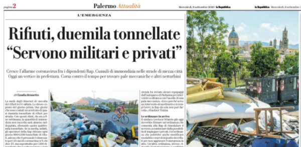 L'edizione odierna de "La Repubblica" si sofferma sull'emergenza rifiuti a Palermo. Due giorni sono costati un arretrato di quasi duemila...
