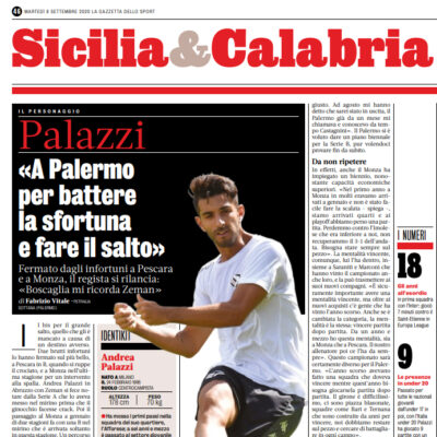 L'edizione odierna della "Gazzetta dello Sport" riporta le dichiarazioni di Andrea Palazzi, centrocampista del Palermo: «L’idea è questa — ammette...