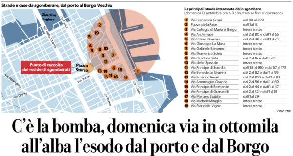 L'edizione odierna de "La Repubblica" si sofferma sulla bomba da disinnescare nella zona del porto di Palermo. Quasi ottomila persona...