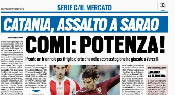 Tuttosport: “Comi vicino al Potenza. Sarao verso Catania. Le trattative in Serie C”