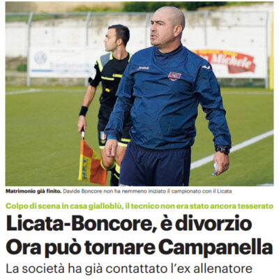 L'edizione odierna del "Giornale di Sicilia" si sofferma sull'anticipato divorzio Boncore-Licata. «L’Asd Licata Calcio comunica che dopo un’attenta riflessione e...