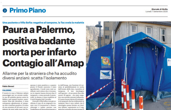 L'edizione odierna del "Giornale di Sicilia" si sofferma sull'emergenza Coronavirus a Palermo. Una badante straniera di 40 anni è morta...