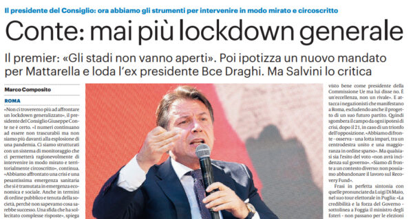 L'edizione odierna del "Giornale di Sicilia" riporta le dichiarazioni di Giuseppe Conte, presidente del Consiglio: «Non ci troveremo più ad...