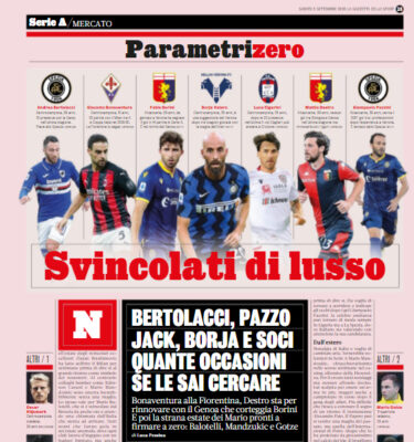 L'edizione odierna de "La Gazzetta dello Sport" parla degli svincolati di lusso. Tutti nomi che fanno gola in un’estate anomala,...