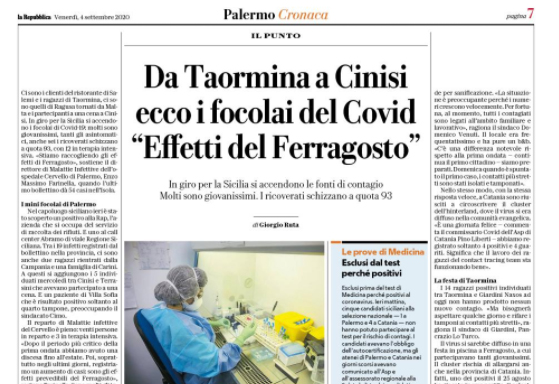 L'edizione odierna de "La Repubblica" si sofferma sull'emergenza Coronavirus. Ci sono i clienti del ristorante di Salemi e i ragazzi...