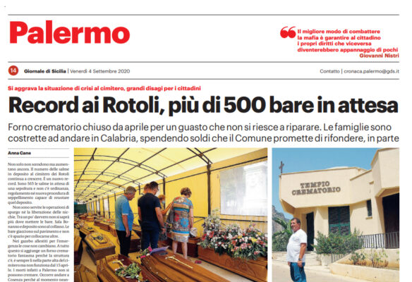 L'edizione odierna del "Giornale di Sicilia" si sofferma sui grandi disagi al cimitero dei "Rotoli" di Palermo. Sono 503 le...