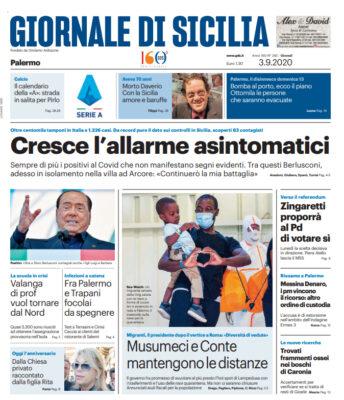 Nella sua prima pagina l'edizione odierna del "Giornale di Sicilia" si sofferma sull'allarme contagi e sull'incontro fra Musumeci e Conte.