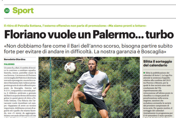 L'edizione odierna del "Giornale di Sicilia" riporta le dichiarazioni di Roberto Floriano, attaccante del Palermo: «Sappiamo di avere un tecnico...