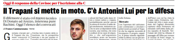 L'edizione odierna della "Gazzetta dello Sport" si sofferma sul Trapani. Sul fronte calciomercato, potrebbe esserci l'approdo di Matias Antonini Lui,...
