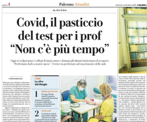 L'edizione odierna de "La Repubblica" si sofferma sui test anti-Covid 19 per il personale scolastico. Molti medici di famiglia non...