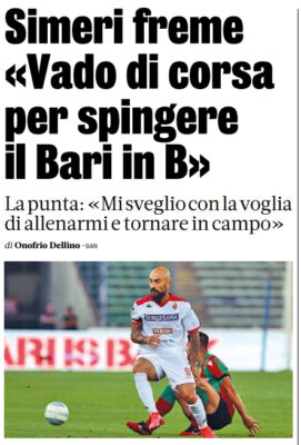 L'edizione odierna della "Gazzetta dello Sport" riporta le dichiarazioni di Simone Simeri, attaccante del Bari: «Mi ispiro a Belotti, anche...