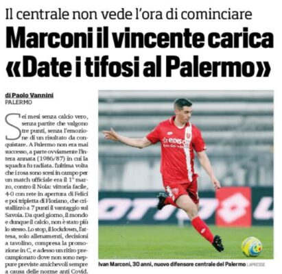 L'edizione odierna de "La Repubblica" riporta le dichiarazioni di Ivan Marconi, difensore del Palermo: «Ringrazio Beppe per le belle parole...