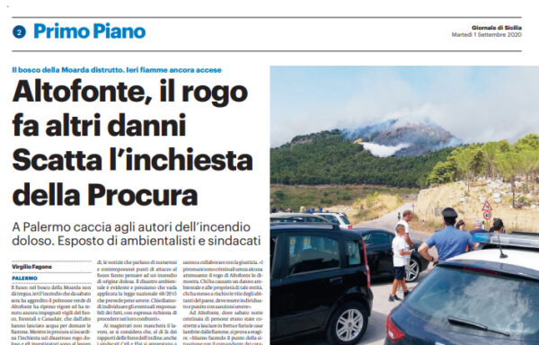 Gds: “Il bosco della Moarda distrutto. Ieri fiamme ancora accese. Altofonte, il rogo fa altri danni. Scatta l’inchiesta della Procura”