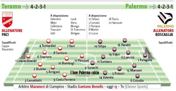 Oggi ci sarà l'esordio del Palermo in serie C contro il Teramo in trasferta. In alto le possibili formazioni che...
