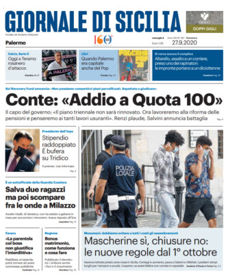 La prima pagina dell'edizione odierna del "Giornale di Sicilia" riporta le parole del premier Conte sulle pensioni: «Il piano triennale...