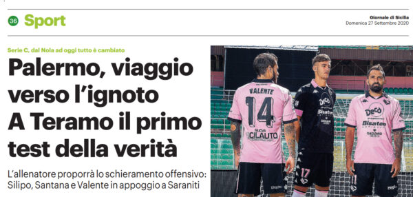 L'edizione odierna del "Giornale di Sicilia" parla di "viaggio verso l’ignoto" per il primo test del Palermo oggi a Teramo....