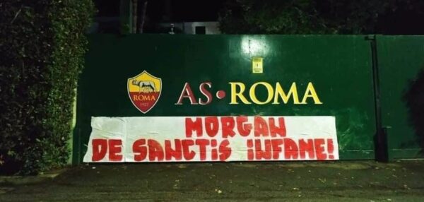 Caos a Roma. I tifosi giallorossi hanno esposto uno striscione di contestazione contro il DS Morgan De Sanctis, come si...