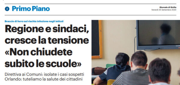 L'edizione odierna del "Giornale di Sicilia" parla del primo giorno di scuola a Palermo. Sempre più bimbi a casa nel...