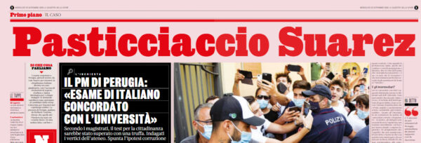 Gazzetta dello Sport: “Pasticciaccio Suarez. Il pm di Perugia «Esame di italiano concordato con l’università». Spunta l’ipotesi corruzione”