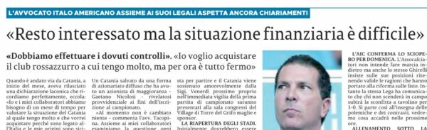 L'edizione odierna de "La Sicilia" riporta le dichiarazioni dell'avvocato e imprenditore Joe Tacopina: «Al momento non è cambiato niente. Assieme...
