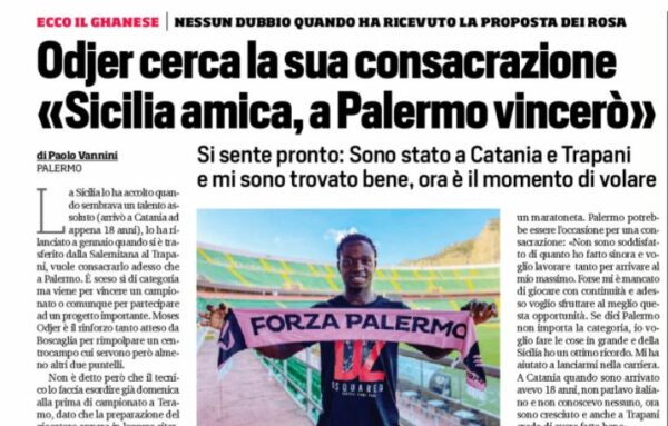L'edizione odierna del "Corriere dello Sport" riporta le dichiarazioni di Moses Odjer, centrocampista del Palermo: «Ho detto subito sì alla...