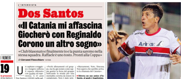 Gazzetta dello Sport: “Dos Santos «Il Catania mi affascina. Giocherò con Reginaldo. Corono un altro sogno»”