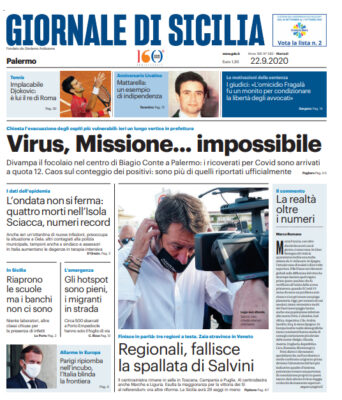 Nella sua prima pagina l'edizione odierna del "Giornale di Sicilia" si sofferma sull'emergenza Coronavirus in Sicilia, adesso trainata dal focolaio...